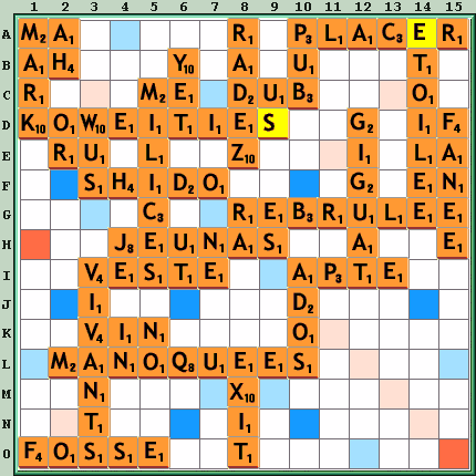 Sous-tops : CAP(E)R A11 33, C(O)MA 2J 30, CR(É)A A12 30, ZAR(B)I E8 28, CRÊPÂ(T) 8J 27 PLAC(E)R A10 36 scrablotar, mayas5 CRÊPA(S) 8J 27 corelle, nordet, jazz DÉC(O)R 8K 21 Luc55 Zéro : [PLAC(E)R N5] PE juvipa