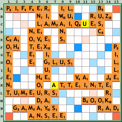 Sous-tops : PIFFEZ A1 23, JE G3 17, ZOB A11 15, BOL A13 15, PIFFER A1 14 RUZ B12 26 corelle, Humbert, manou972, didine49, BRIGHIT, mileva, helene1203, yohimbehe, francesca, Gapakh, calou, vp54, patounet13 R(U)OLZ 11B 26 scrablotar JE G3 17 Ana, bilou, chrissie BOL A13 15 minou30 PIFFER A1 14 jeanmichel RIZ A7 12 mamiegene JO(U)R 11A 10 sharon RAIL 11I 4 tony Zéro : [OVEZ 10I] OVEZ mada